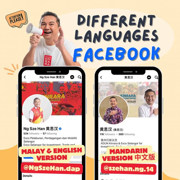 (莎阿南21日讯)雪兰莪行政议员兼金銮区州议员黄思汉为推出了巫/英版和中文版的脸书专页,方便民众今后掌握最新的资讯。
