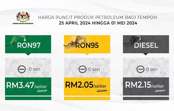 其中,RON97每公升价格维持在3令吉47仙;RON95油价每公升维持在2令吉5仙,柴油价格则维持在每公升2令吉15仙。