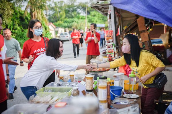 希盟候选人彭小桃(左2)走入社区,与选民交流。(当今雪州照片)[/caption]