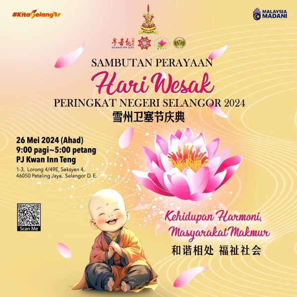 (莎阿南15日讯)由雪兰莪州政府主办的2024年卫塞节庆典将于5月26日(星期日)在八打灵再也观音亭举行,欢迎所有佛教徒前来参与盛会。