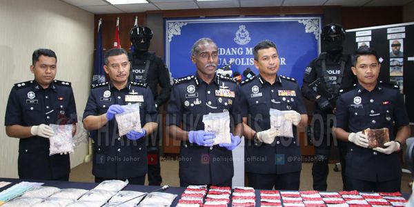 柔佛州总警长古马表示,被捕的2名本地男子分别是35岁和36岁,起获10.74公斤海洛因、875克大麻、37包冰毒和6100粒5仔丸,总值33万1339令吉。