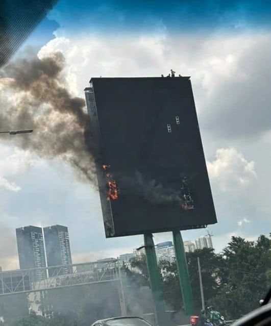 (莎阿南31日讯)联邦大道靠近八打灵再也路旁的一个大型电子广告牌,今天下午约1时25分突然起火,消拯队伍已抵达现场灭火。