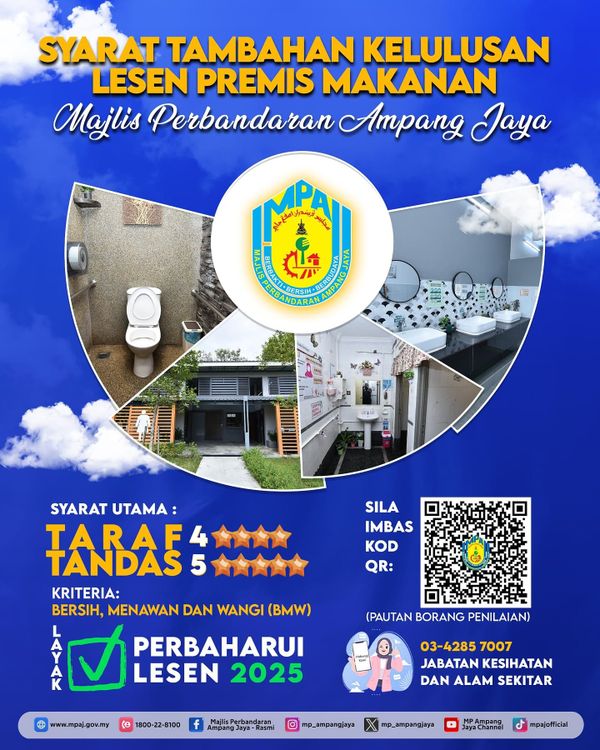 “从2025年起,只有取得4星级和5星级的厕所,才有资格更新执照。该标准涵盖干净、迷人、芳香(BMW)元素,符合房屋和地方政府部(KPKT)的建议。”