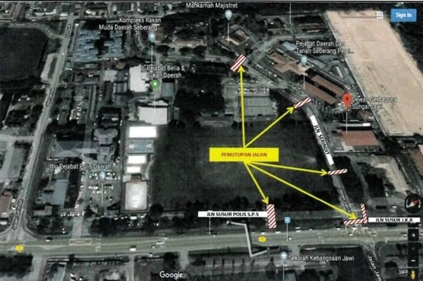 “暂时关闭的道路包括瑟琳迪路(Jalan Serindit)、驶往威南县警察总部的道路和驶往威南县公共工程局的道路等。”