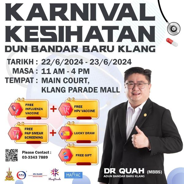 巴生新城区州议员柯鹏飞在脸书指出,为期两天的健康嘉年华从上午11时至下午4时,在巴生百利广场舞台区举行。