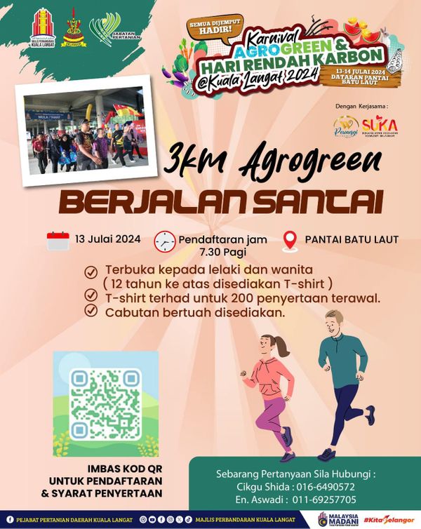 (莎阿南3日讯)2024年瓜拉冷岳@农业嘉年华暨低碳日3公里竞跑于7月13日(周六)举行,欢迎民众报名参与。