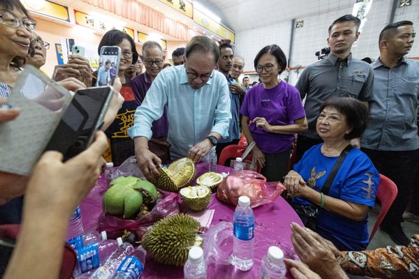 他也抽空约半小时与逾1500名访客一起品尝榴梿、玉米、山竹和柚子等本地水果。