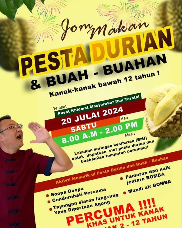 “2岁至12岁的孩童可以参与免费的健康检查。我们同时举办水果和榴梿嘉年华,只要完成身体质量指数(BMI)的检查,孩童就可以现场免费食用。”