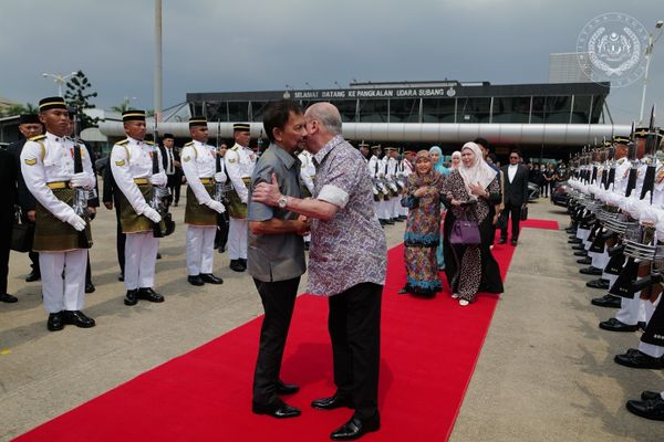 (吉隆坡21日讯)国家元首苏丹依布拉欣今日亲自开车载汶莱苏丹哈桑纳博尔基亚到梳邦皇家空军基地,并欢送汶莱苏丹伉俪返国。