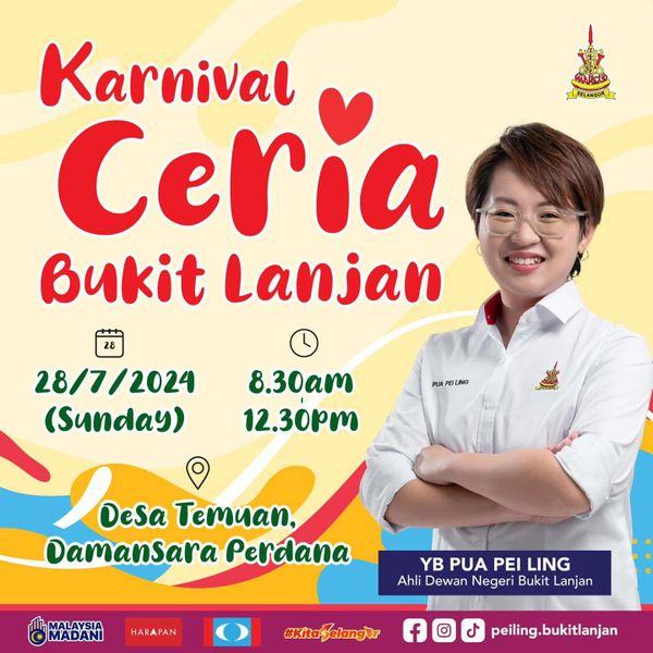 武吉兰樟区州议员潘佩玲在脸书发帖表示,嘉年华将从上午8时30分至中午12时30分在白沙罗柏兰岭的帝沙德慕安举行。