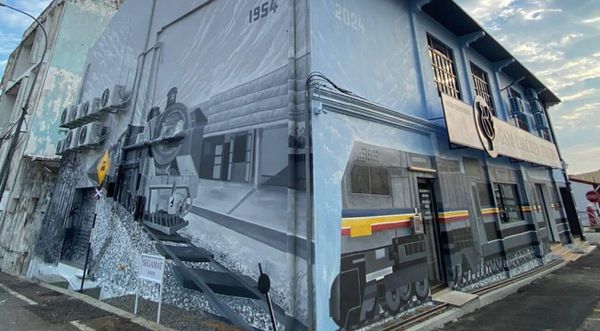 “全马最大火车壁画“位于昔加末旧市区亚罗拉路GSM Chicken Station的外墙,吸引许多人到来取景拍照。(图/gsmchickenstation)[/caption]
