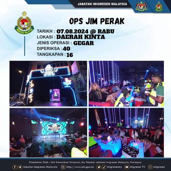 霹雳州移民局(JIM)局长米尔赫布拉表示,行动从昨晚7时开始,在5小时内检查了三个场所,即娱乐中心、餐厅和商场。