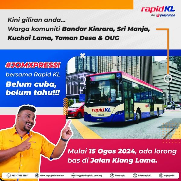 (吉隆坡10日讯)吉隆坡快捷通巴士(Rapid KL)将与吉隆坡市政厅合作,于8月15日起,在旧巴生路(Jalan Klang Lama)推出试验性巴士专用道项目。