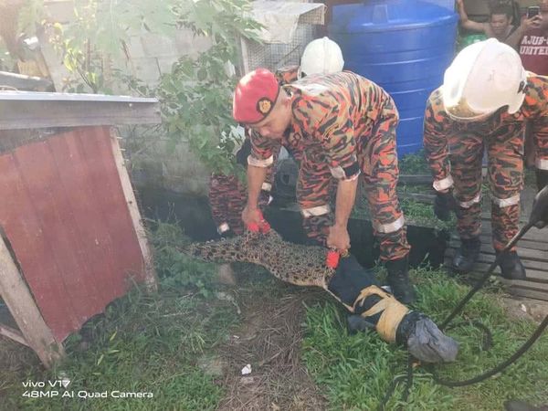马来西亚消拯局(JBPM)透过脸书发文指出,当局昨日下午3时55分接获民众投报后,派遣6名来自阿沙再也消防局的队员到事发地点,协助捕抓鳄鱼的行动。