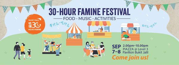 饥饿30是马来西亚世界宣明会的年度活动之一。该国际人道救援组织希望透过饥饿30活动筹获120万令吉善款,用于支援世界宣明会在刚果民主共和国、黎巴嫩、斯里兰卡和马来西亚所推动的社区发展项目,为有需要的孩童和家庭提供医疗保健与营养和家庭生计方面的援助。