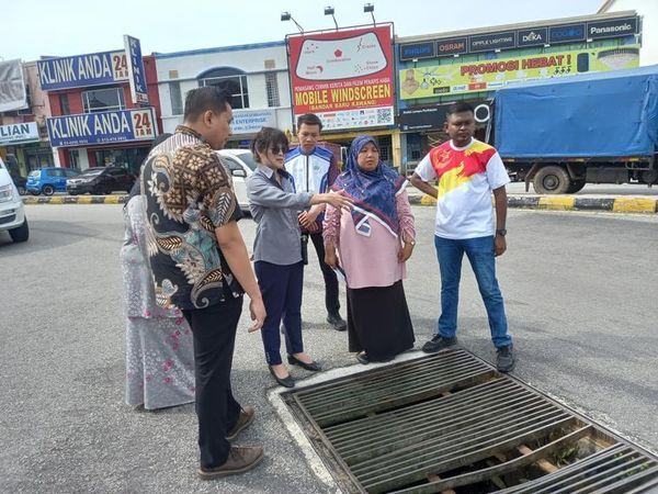 万挠区州议员蔡伟杰服务中心与市议会代表今日巡视有关下沉的路段,称市议会将在9月展开修复行动,预计工程可在10月杪竣工,期间将不断更新工程进度。