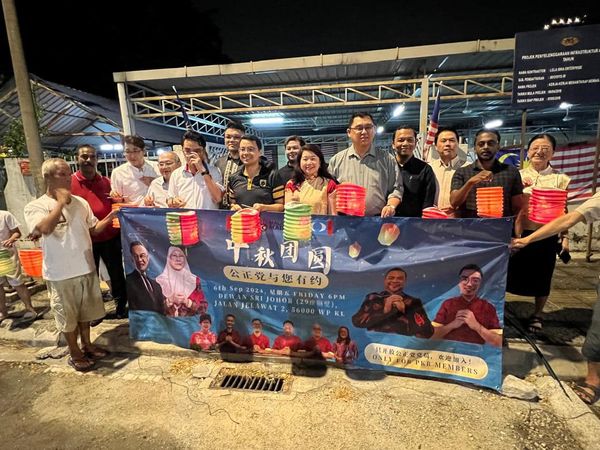 公正党敦拉萨镇中秋园游会于当地29座组屋礼堂举行,获得当地居民热烈响应,出席者包括公正党妇女组秘书罗可倩与公正党联邦直辖区执委戴勤杰。