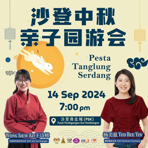 “沙登中秋园游晚会”由史里肯邦安区州议员王诗棋服务中心,以及梳邦再也市议员黄娜娜联合举办,预计今次可吸引1万人次参与。