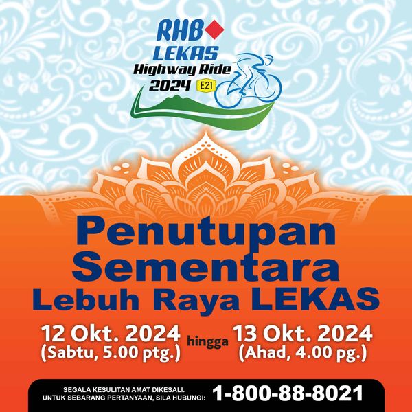 (吉隆坡8日讯)配合2024年加影芙蓉大道RHB脚车比赛(RHB LEKAS Highway Ride),有关大道在本周六(12日)下午5时全面关闭至本周日(13日)清晨4时。