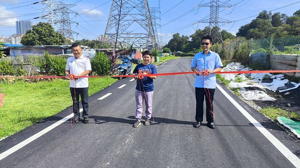 (八打灵再也16日讯)经过55年的等待,千百家村PJU 1/23路终于获得拨款重铺后,换上新貌的路段让20户当地家庭得以摆脱烂路之苦。