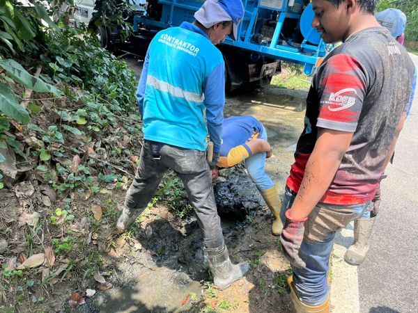 工作人员在莎阿南的水灾热点地区展开请沟工作。(图 / MBSA 脸书)[/caption]