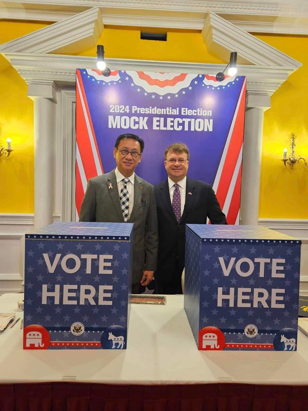 美国驻马来西亚大使馆今日在吉隆坡丽兹卡尔顿酒店举办活动,邀请旅居大马的美国公民、外交官和本地政治爱好者,现场跟进美国总统选举成绩。
