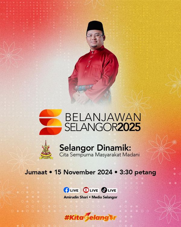 雪兰莪州务大臣拿督斯里阿米鲁丁今日在脸书发帖说,他将于本周五(15日)下午3时,提呈主题为“活力雪兰莪:昌明社会的理想追求”(Selangor Dinamik : Cita Sempurna Masyarakat Madani )的预算案。