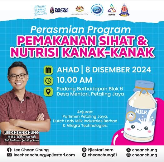 (莎阿南5日讯)八打灵再也区国会议员李健聪服务中心将于本周日(8日)上午10时推介儿童健康营养计划,呼吁公众踊跃出席以见证这项计划的正式启动。