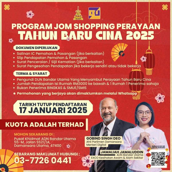 (莎阿南20日讯)万达镇州选区的华裔选民注意!万达镇区州议员嘉玛丽雅服务中心已开放2025年农历新年购物券申请,符合资格的居民可获得200令吉购物券以备年货之需。