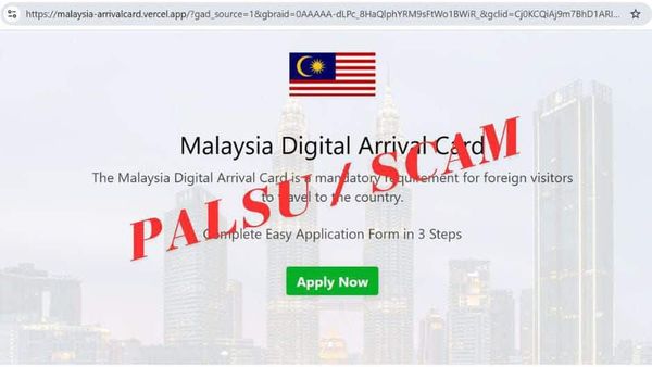 移民局在脸书书发文说,该局发现一个虚假网站,链接为https://malaysia-arrivalcard.vercel.app/?gad_source=1…