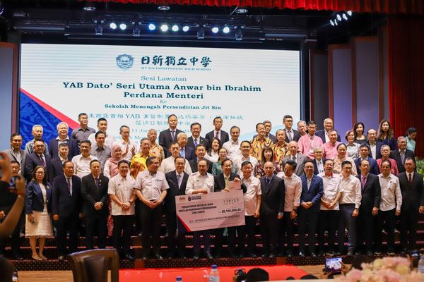 安华今日中午回到曾经执教的槟城大山脚日新独中,移交这笔独中年度拨款。每所独中可以获得32万令吉拨款,而日新独中则获得100万令吉拨款。