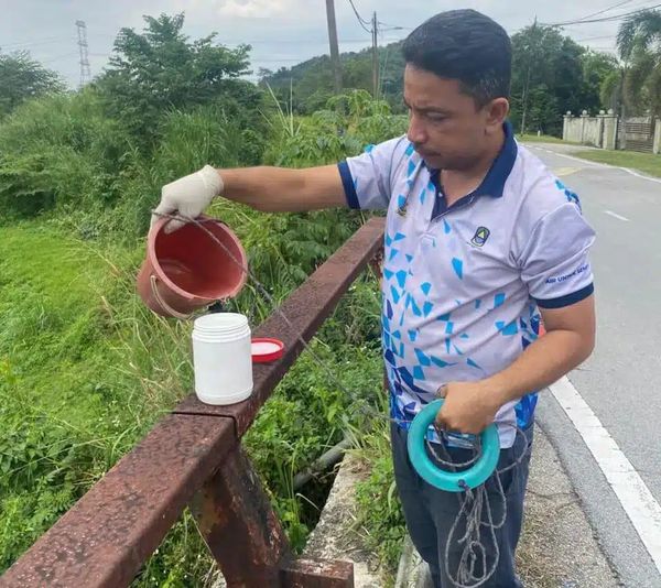 雪州水务管理局于本周二傍晚6时40分进行列行巡逻时,发现冷岳河流域卡布河(Sg. Kabul)出现长达500米的粉红色流水后,立即启动水源污染紧急手册黄色警戒,并深入调查和迅速采取干预措施。