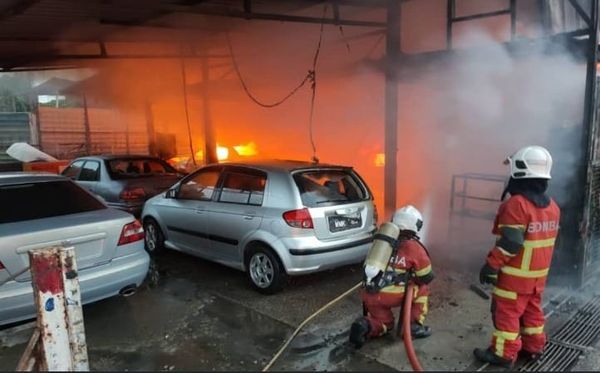 (甲抛峇底2日讯)修车厂今早遭火魔光顾,一名64岁男子的背部不幸烧伤。