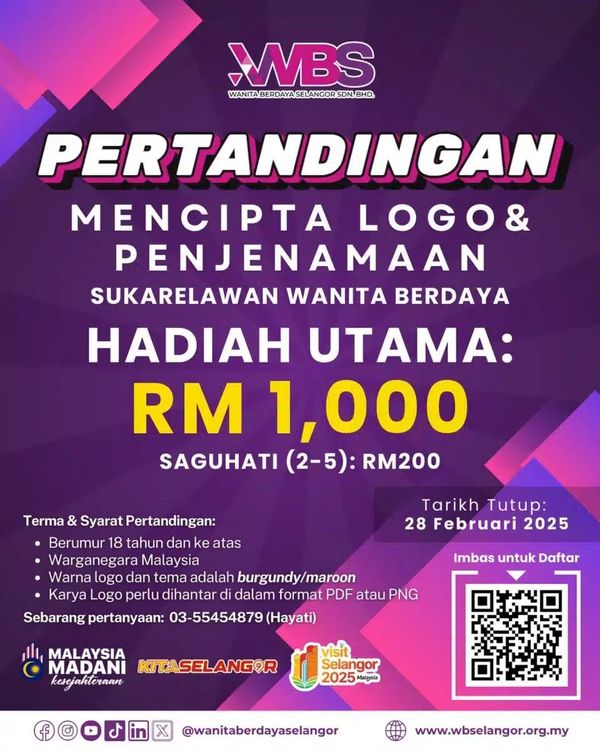雪州妇女增值中心今日在脸书发文表示,此竞赛报名截止日期至2月28日,参赛标志须具备独特性、简洁性、富有意义且高辨识度,易于记忆。
