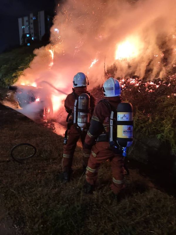 消拯局在接获轿车失火的投报后,从士毛月消拯局调派一辆消防车和6名消拯员赶抵事发现场。