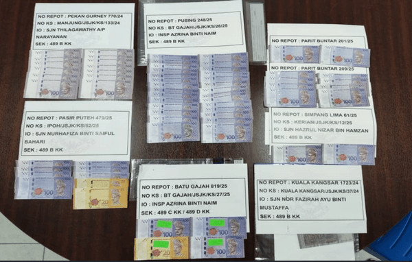 他说,以假钞交易案件发生在怡保、布先、曼绒、瓜拉江沙及吉辇等地,并在2024年至2025年间被举报。