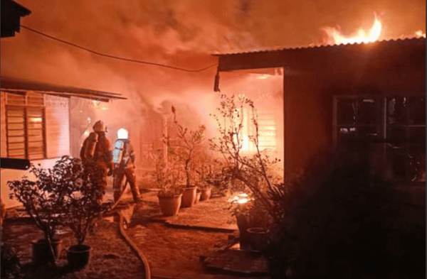 (怡保10日讯)万锐(Manjoi)甘榜东姑胡申峇鲁周日晚发生火灾,熊熊烈火烧毁5间民宅和4辆摩托车。