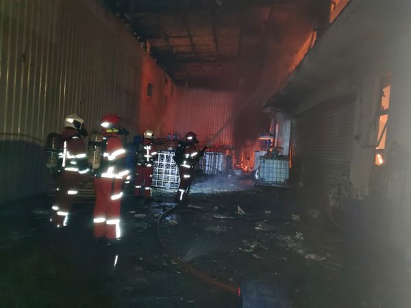 (莎阿南26日讯)雪兰莪巴生港口一家清洁剂化工厂今日凌晨发生火灾,装有化学物品的集装桶失火,导致化学物泄露,所幸并未酿成伤亡事故。