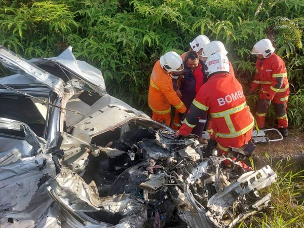 “救援队在抵达现场时,发现一辆第二国产Alza轿车内共有5人受困。医护人员证实其中3人当场身亡,即44岁诺阿扎丽雅、22岁阿丽雅娜和39岁西蒙邱(译音:Simon Hiu)。”