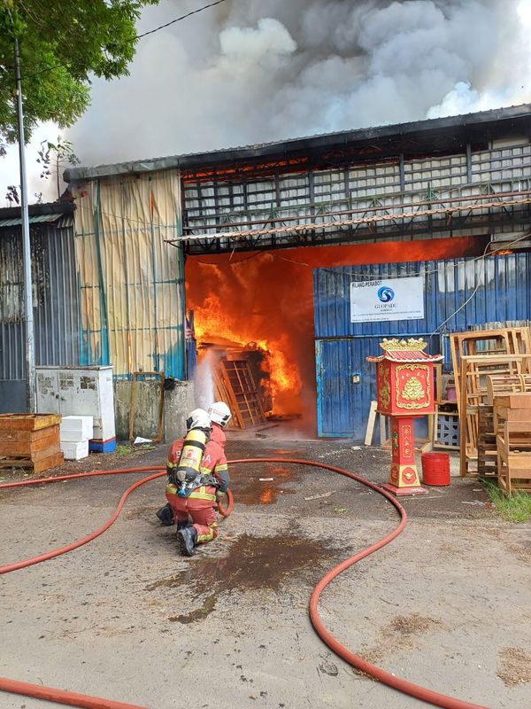 蒲种工业园于2025年3月14日早上发生火灾,殃及六家工厂和一座仓库。 (照片:JBPM Selangor)[/caption]