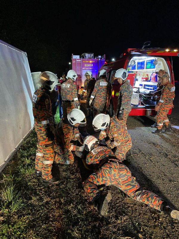 另一方面,负责今次拯救行动的消防及拯救局指挥官再尼表示,当局在今日凌晨2时25分接获车祸投报,派出救援队伍和两辆消防车赶抵现场。
