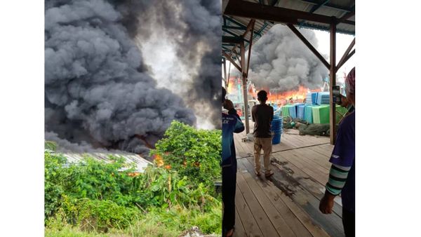 (莎阿南25日讯)雪兰莪适耕庄海口今早发生大火,熊熊烈火瞬间烧毁至少2间鱼行和1间民宅,连带烧毁数艘停泊在码头的渔船!