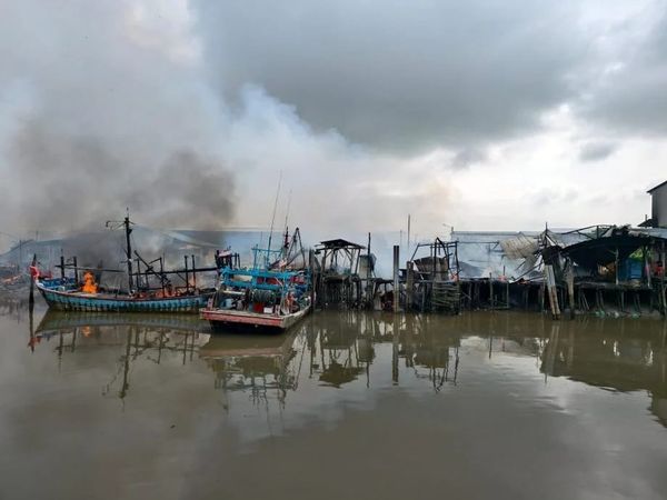 适耕庄海口渔村第10巷于2025年3月25日,发生当地开埠以来最严重的火灾,共有9间鱼行、一间铁厂、一辆罗里、四轮驱动车皆被烧成灰烬。(图/黄瑞林提供)[/caption]