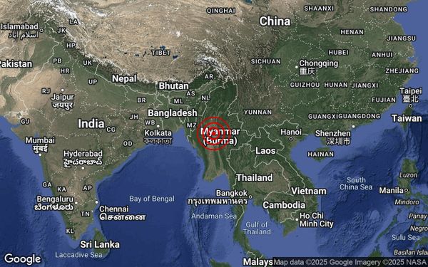 有关地震的震中位于北纬21.7度,东经95.7度,震源深度为57公里。