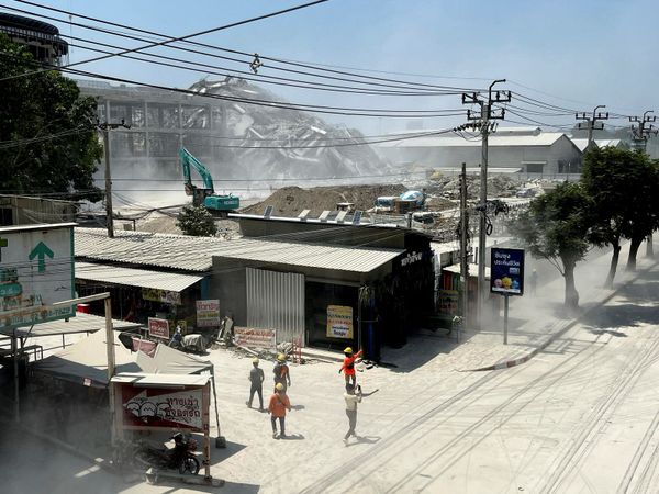 据泰国媒体报道,乍都节县区一栋正在兴建中的高楼因地震而倒塌,当时有43名工人受困。