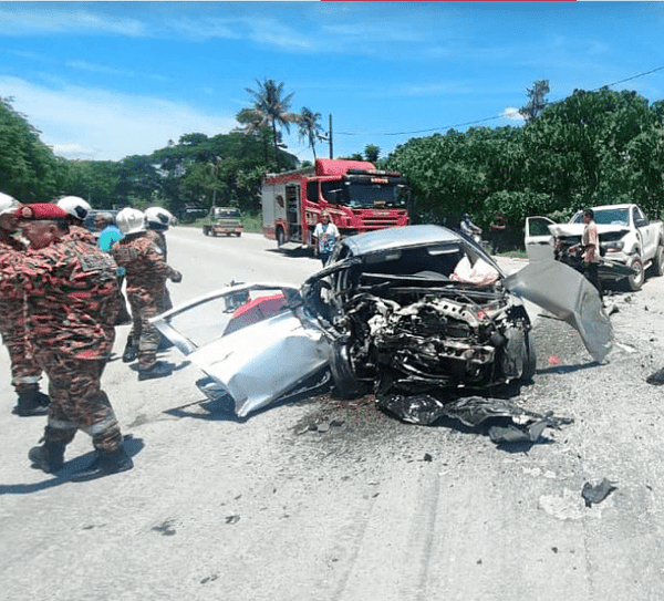 这宗车祸4月3日中午发生在霹雳州新邦波赖-金马仑高原路段,涉及一辆本田Vios轿车与本田Hilux四轮驱动车。
