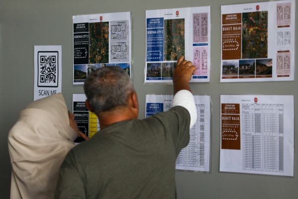 雪州房屋及文化行政议员拿督柏汉阿曼(右)于2025年4月14日,向布特拉高原天然气管爆炸事故灾民讲解由雪州房地产局献议的临时居所。(摄影:FIKRI YUSOF/MEDIA SELANGOR)[/caption]