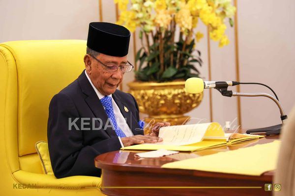 殿下今日在达鲁阿曼州政府大厦举行的吉打州议会会议开幕式,发表御词。