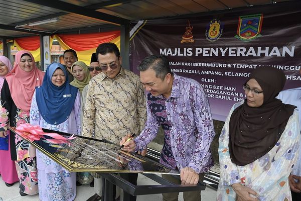 安邦拿督阿末拉扎里国中甫落成的行人道与候车亭方便学生上下学等候家长接送。 (摄影:HARUN TAJUDIN / MEDIA SELANGOR)[/caption]