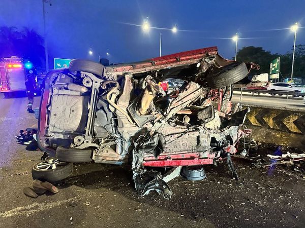 “事故涉及一辆丰田Vios轿车。事发时,轿车在大道出口失控后猛撞分界堤,导致车内三名男子受困。医护人员证实,三名男子已当场身亡。”